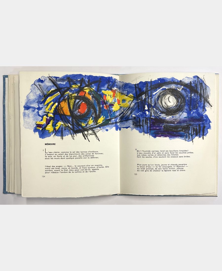 (Paris), Les Bibliophiles de l’Est, 1961-63. In-4 en feuilles de 137 pp., sous couverture imprimée rempliée, chemise et étui bleu de l’éditeur. Insolations sur les plats de la couverture et au dos de la chemise. Petit manque au mors supérieur du plat inférieur de la chemise cartonnée. Ouvrage illustré de 16 lithographies originales de Jean-Jacques Morvan (Paris, 1928 – Paris, 2005) en couleurs dans le texte. Tirage à 155 exemplaires sur Vélin d’Arches (n°55).