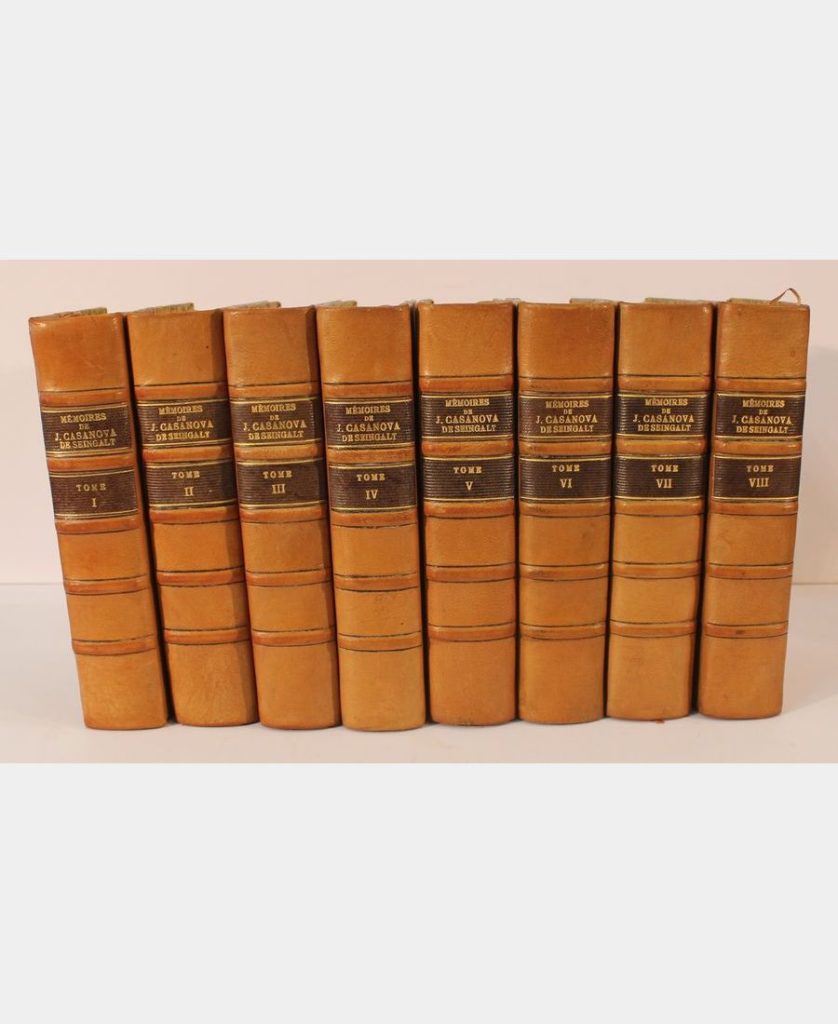 La reliure est aux armes de la Duchesse Charlotte Marie von Schleswig-Holstein-Sonderburg-Augustenburg (1697 – 1760), épouse du duc Philipp Ernst von Schleswig-Holstein-Sonderburg-Glücksburg. On trouve également son cachet aux initiales et couronne sur chaque page de titre. La dorure des armes est un peu effacée, n’altérant néanmoins pas la lisibilité et l’identification de ces dernières.