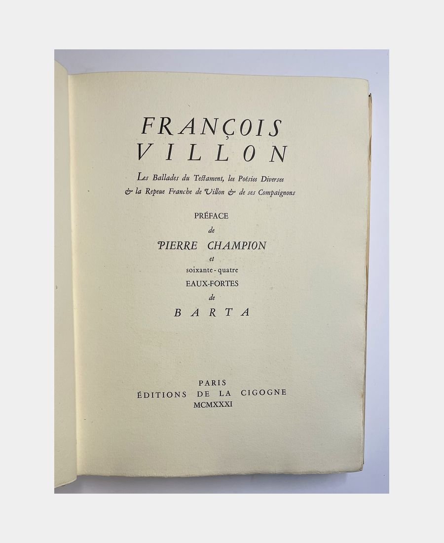 Les Ballades du Testament, les Poésies Diverses & la Repeue Franche de Villon & de ses Compaignons. Villon (François). Illustré par Barta. Exemplaire unique dans cette reliure.