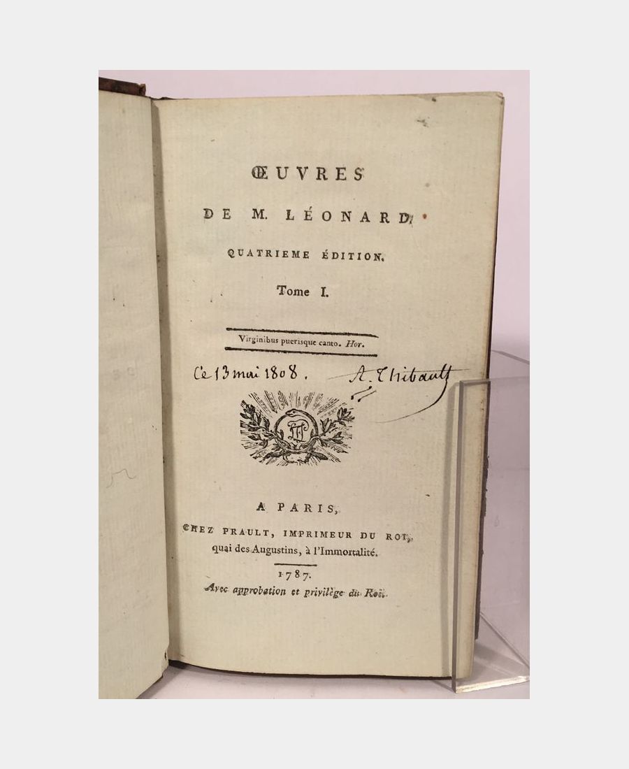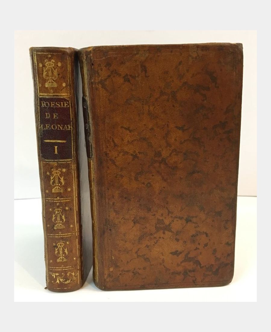 Paris, Prault, 1787 ; 2 vol. in-12 (148x88mm), 305 pp., 1 f.n.ch. et 5 planches gravées et 278 pp., 3 f.n.ch. Reliure plein veau d’époque, dos lisse à caissons ornés, pièce de titre. Bien complet des deux frontispices et des six gravures hors-textes. Notons la « Lettre sur un Voyage aux Antilles », illustrée d’une « Vue du Pont du Parc, à la Guadeloupe » gravée par Simon d’après Moreau. L’auteur, né en Guadeloupe, fit de nombreux voyages entre la métropole et son île natale toute sa vie durant. Epidermures sur les plats, mouillures et rousseurs éparses.