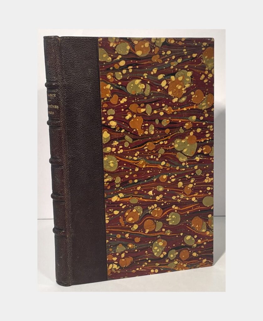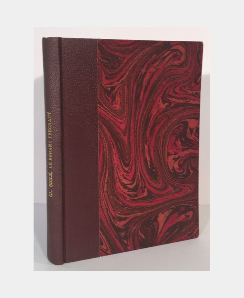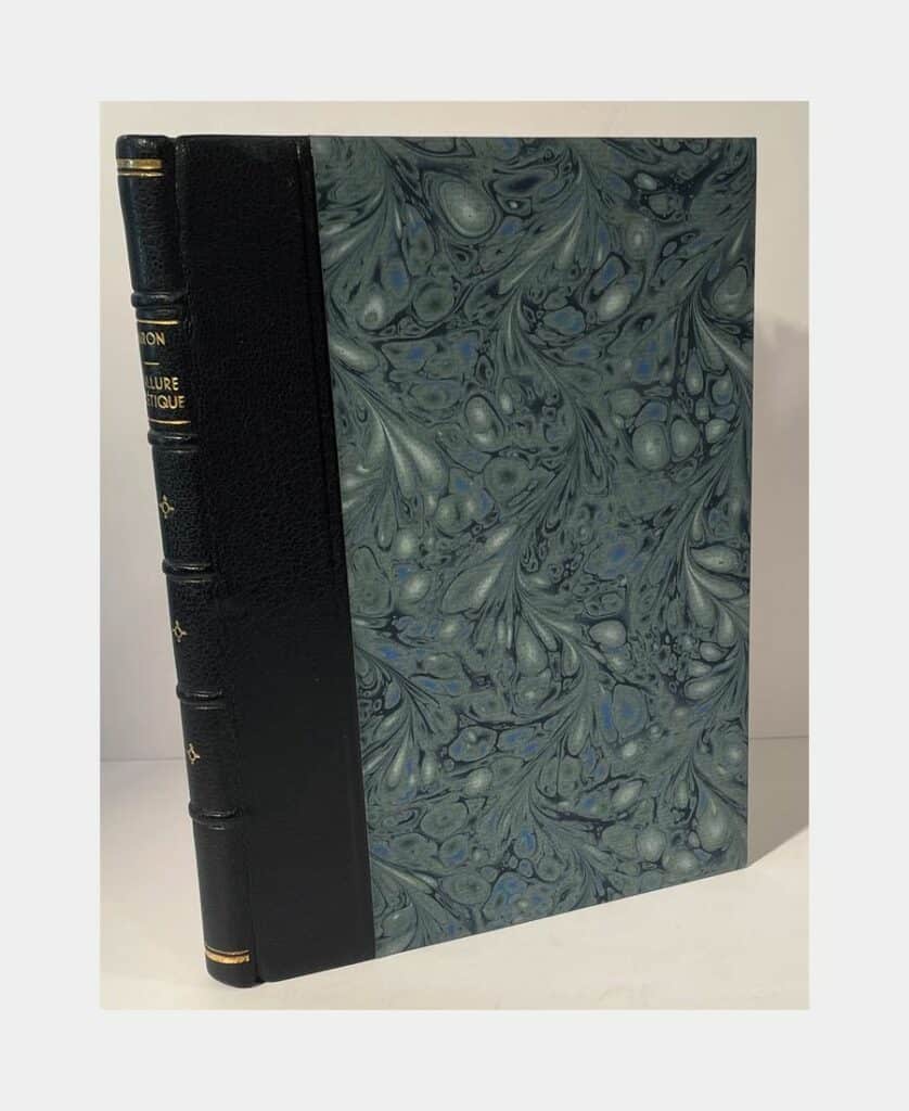 Paris, Bibliothèque de l’Occident, 1908. Grand in-8 de 53 pp. Demi-maroquin havane à coins, dos lisse à motif végétal en cuir incrusté, pièce de titre. Très légers frottements. Édition originale tirée à 400 exemplaires numérotés, numéro 77 (après 25 exemplaires sur Hollande). Les couvertures d’origine ont été conservés.