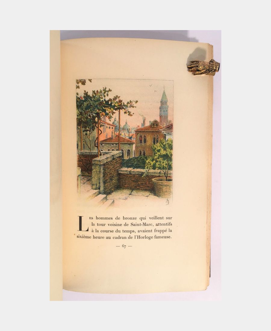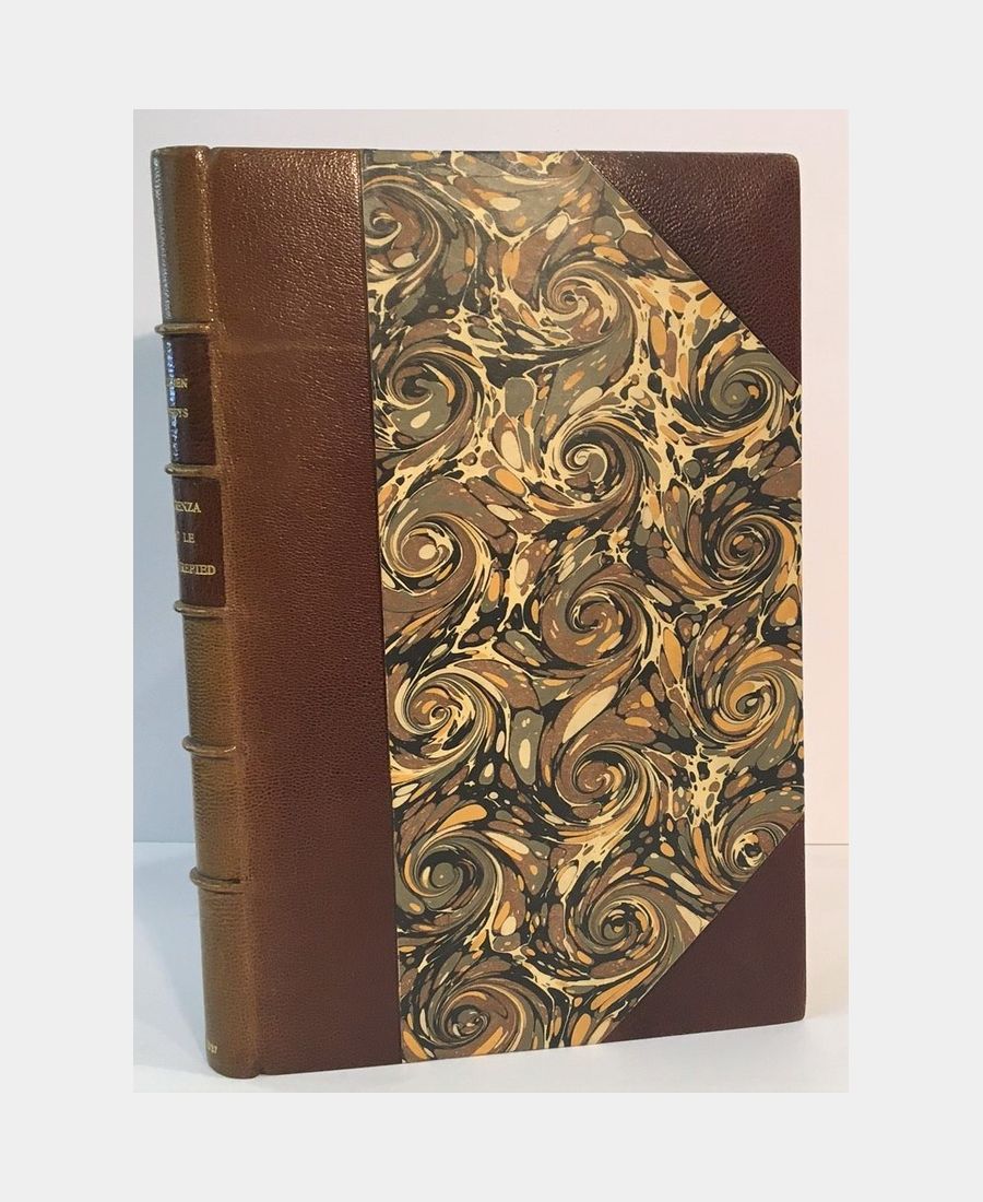 Paris, A. Blaizot, 1927 ; in-8 de 128 pages. Demi-maroquin marron à coins, dos à 5 nerfs, pièces de titre, date en queue. Dos très légèrement insolé. Exemplaire bien relié en demi-maroquin signé Blin. Couvertures et dos conservés. Tirage à 250 exemplaires, celui-ci sur Hollande Van Gelder Zonen. Cet ouvrage est illustré de belles eaux-fortes imprimées en couleurs, dessinées par Léonce de Joncières, gravées par Thévenin. Le peintre Léonce de Joncières fut élève de Gérôme et de Bouguereau. Très bel exemplaire.
