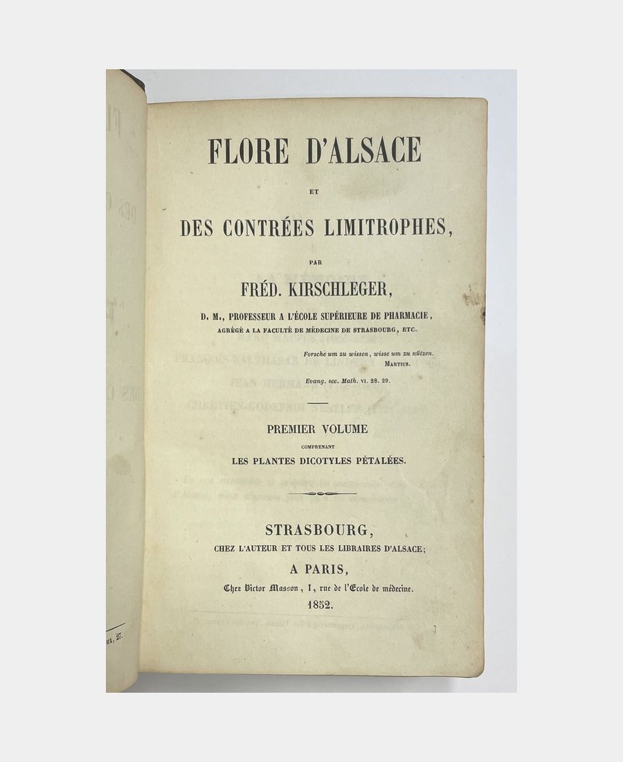 Flore d’Alsace et des contrées limitrophes. KIRSCHLEGER (Frédéric). 1852 – 1858 – 1862.